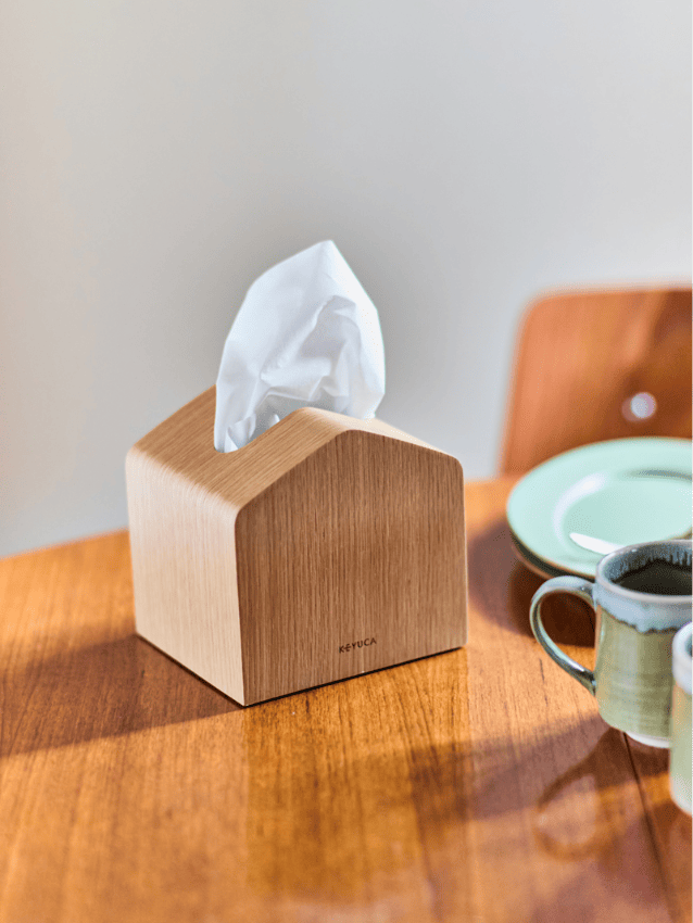 卓上においても可愛いティッシュケース。小さなこだわりで部屋を心地よく。
